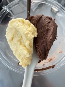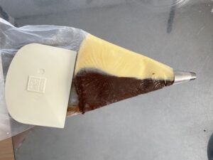 2色の絞り出し生地をどのように袋に入れるか?のテクニック。あなたならどう入れますか?